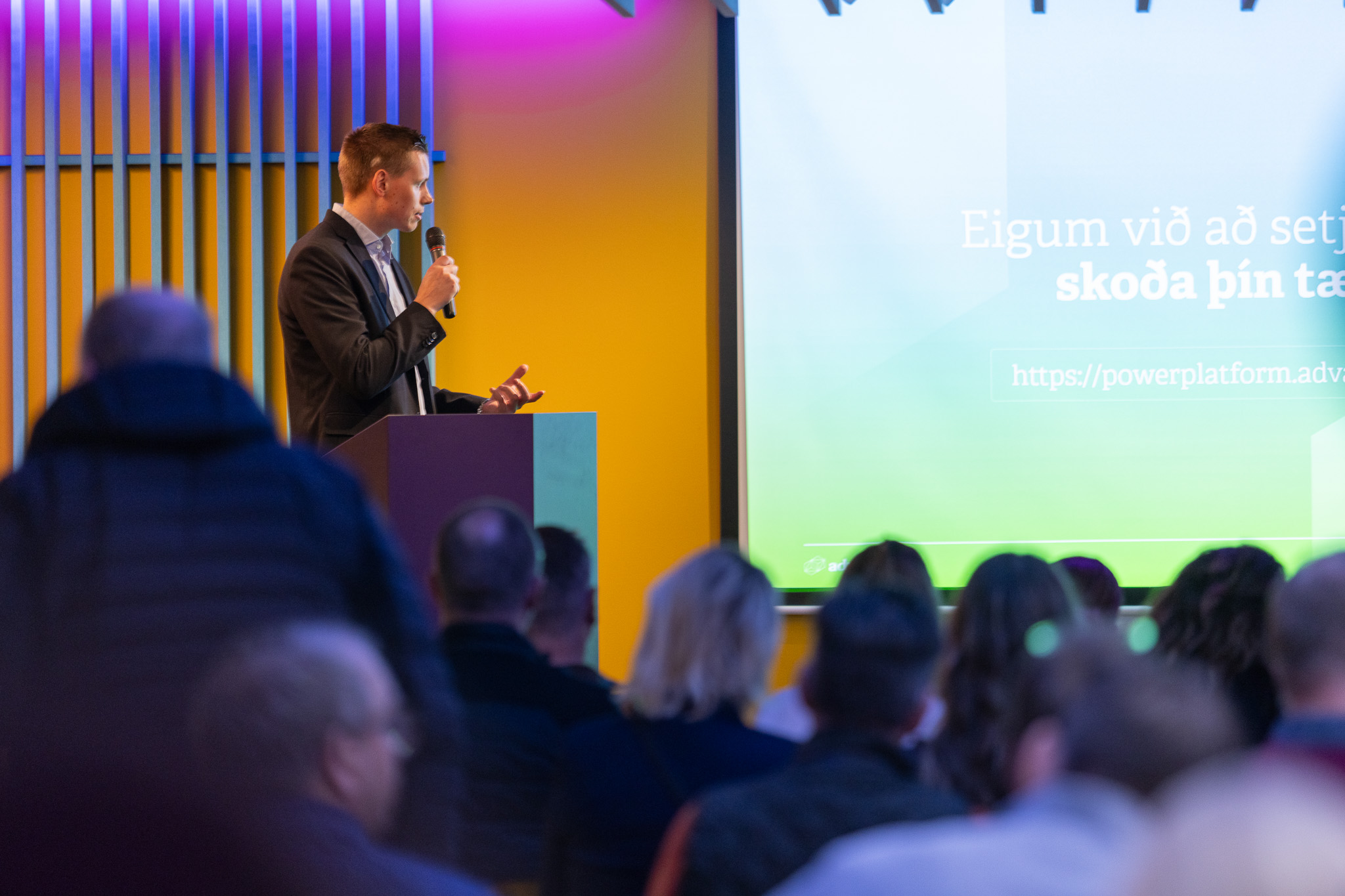 Viktor Steinarsson, deildarstjóri Power Platform og gervigreindar, fór yfir það hvernig Advania nýtir Power Platform til að styðja viðskiptavini í að ná árangri – bæði með ráðgjöf og tilbúnum lausnum. Kynntar voru helstu vörur í Power Platform og hvernig þær geta verið lykilverkfæri í sjálfvirknivæðingu og þróun snjallra lausna.