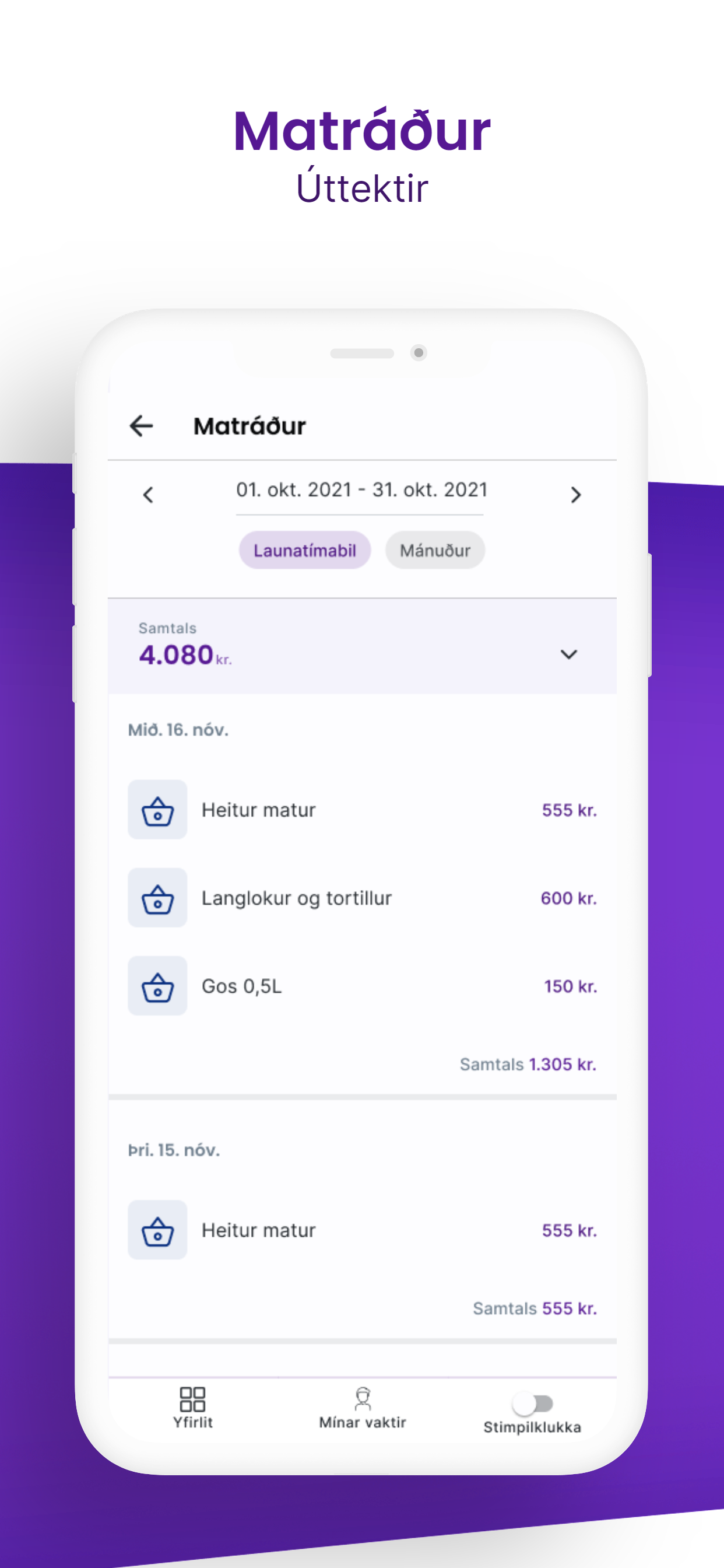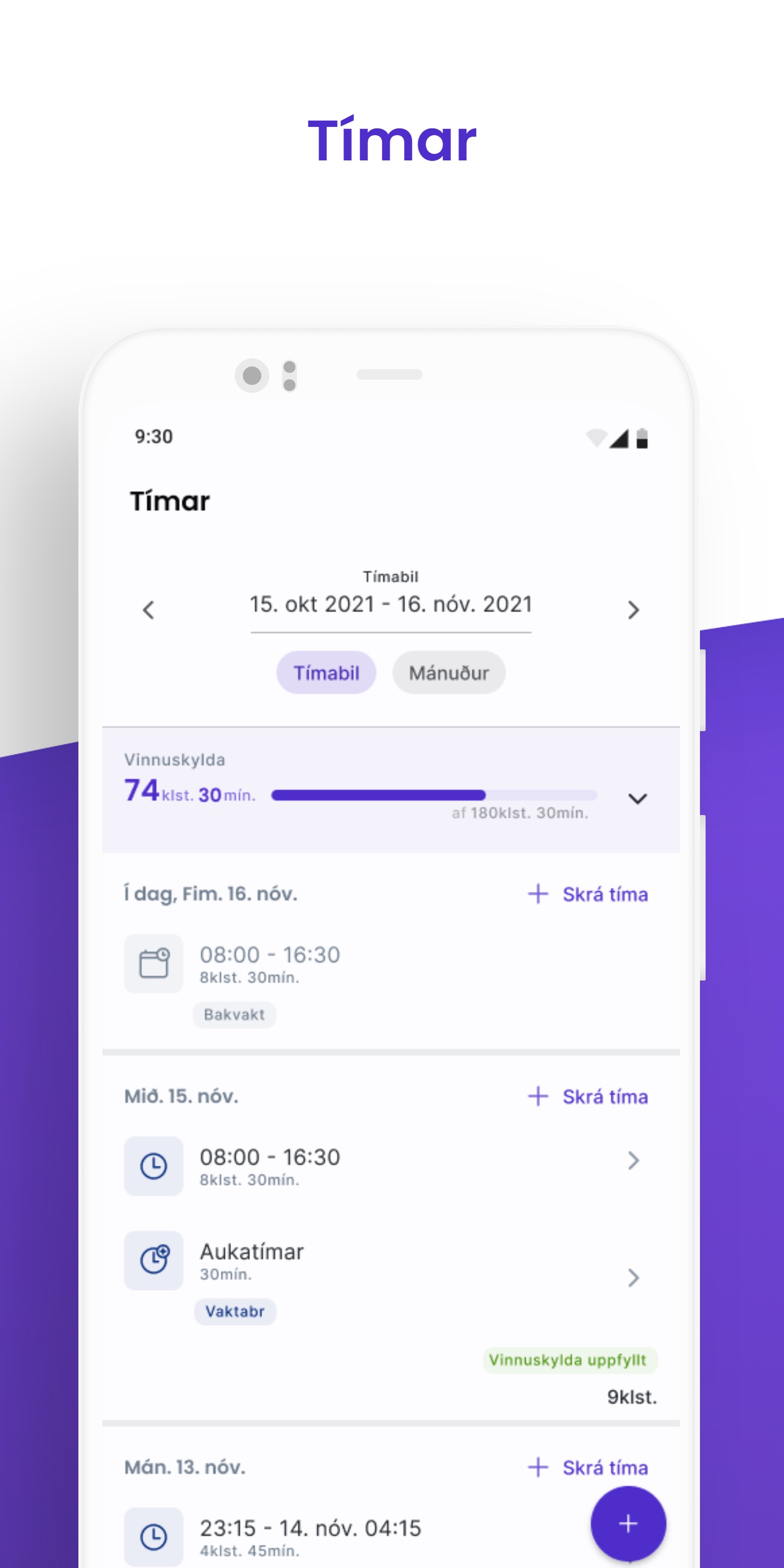 Með Smástund appinu færð þú einfaldari aðgang að þínum tímaskráningum í símanum