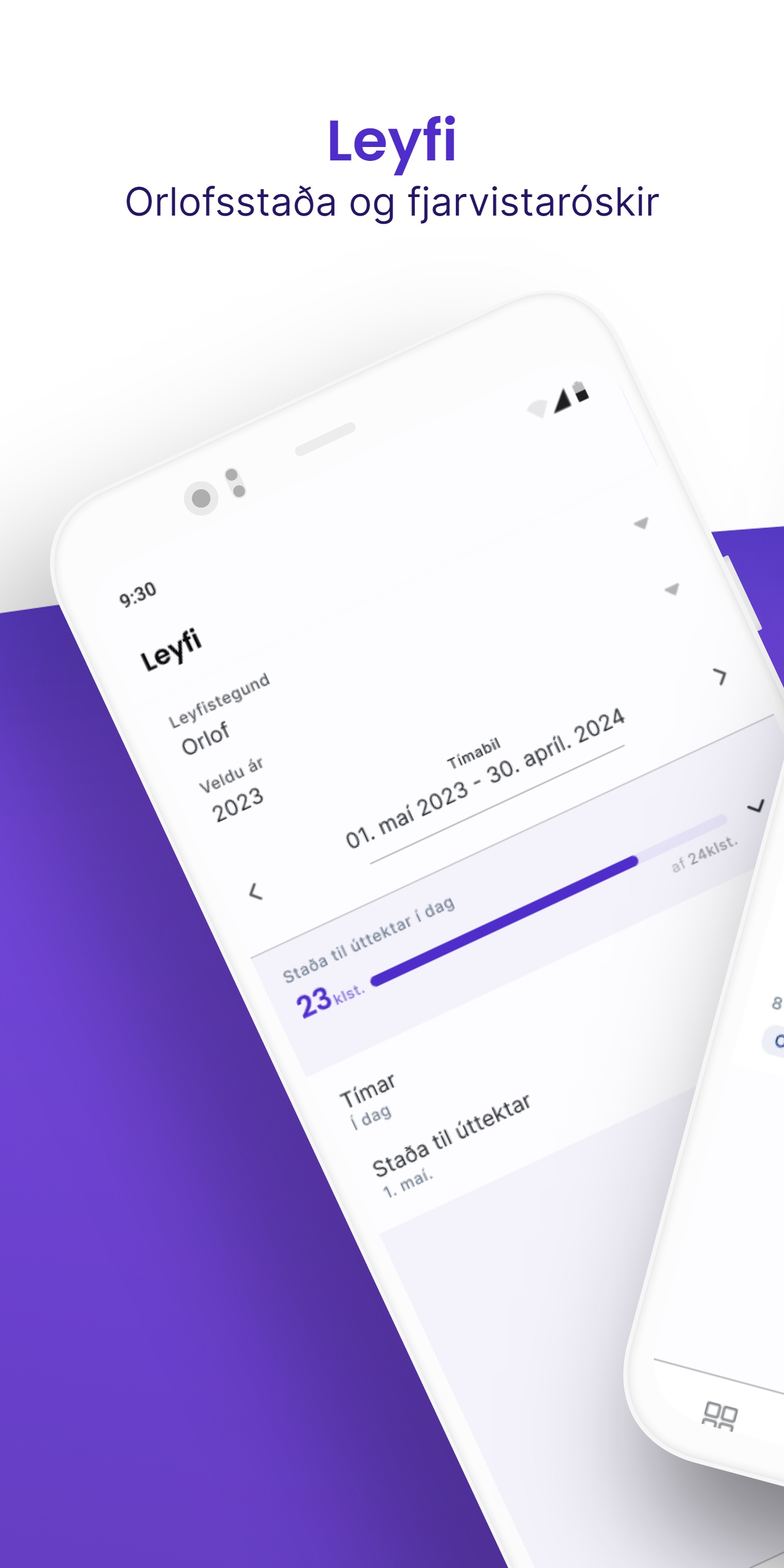 Skoða orlof, vinnutíma og skrá fjarvistir.